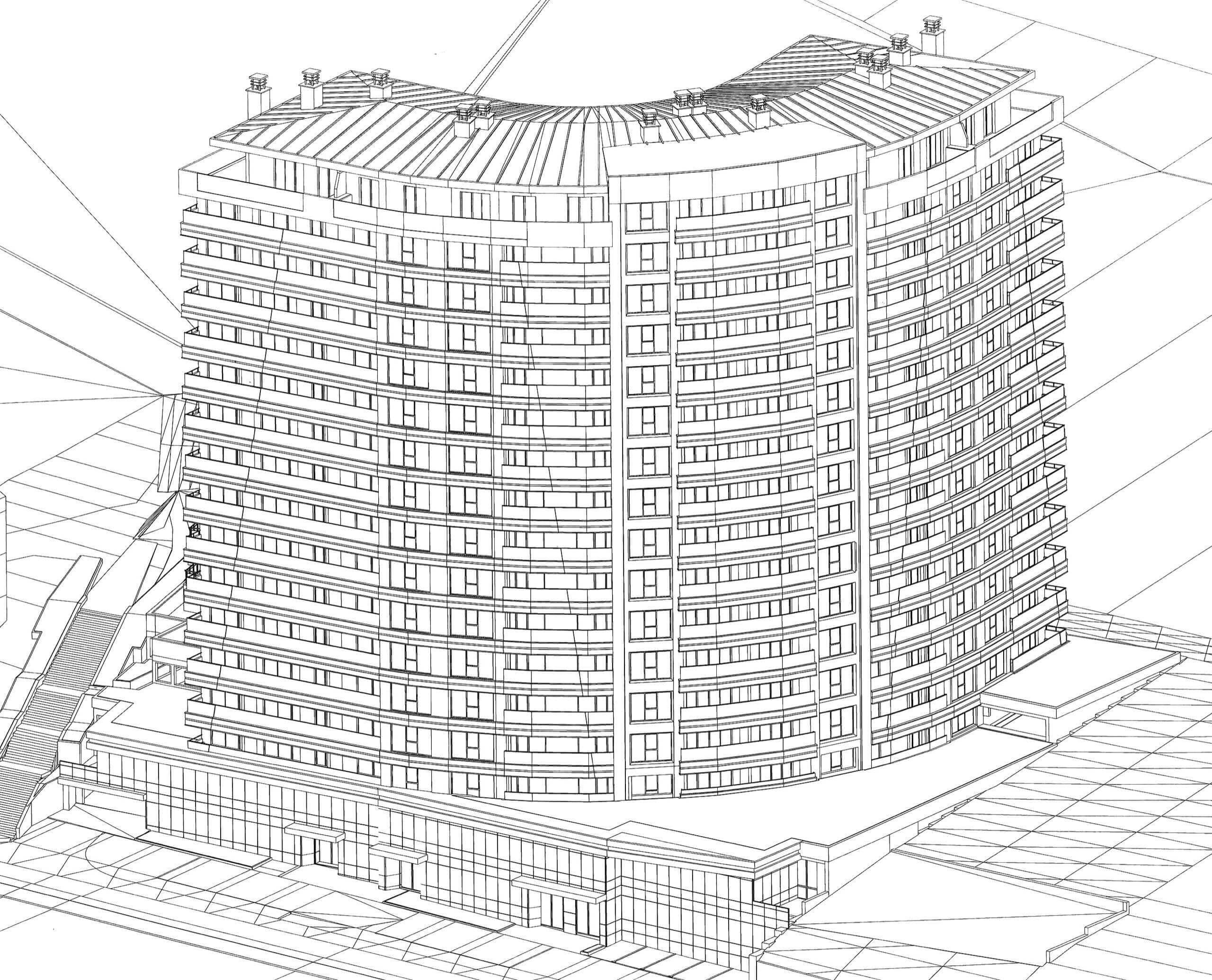 Конструкцията на сградата е монолитна, изградена от стоманобетон, в съответствие с европейските стандарти за строителство, което гарантира нейната здравина и устойчивост.
