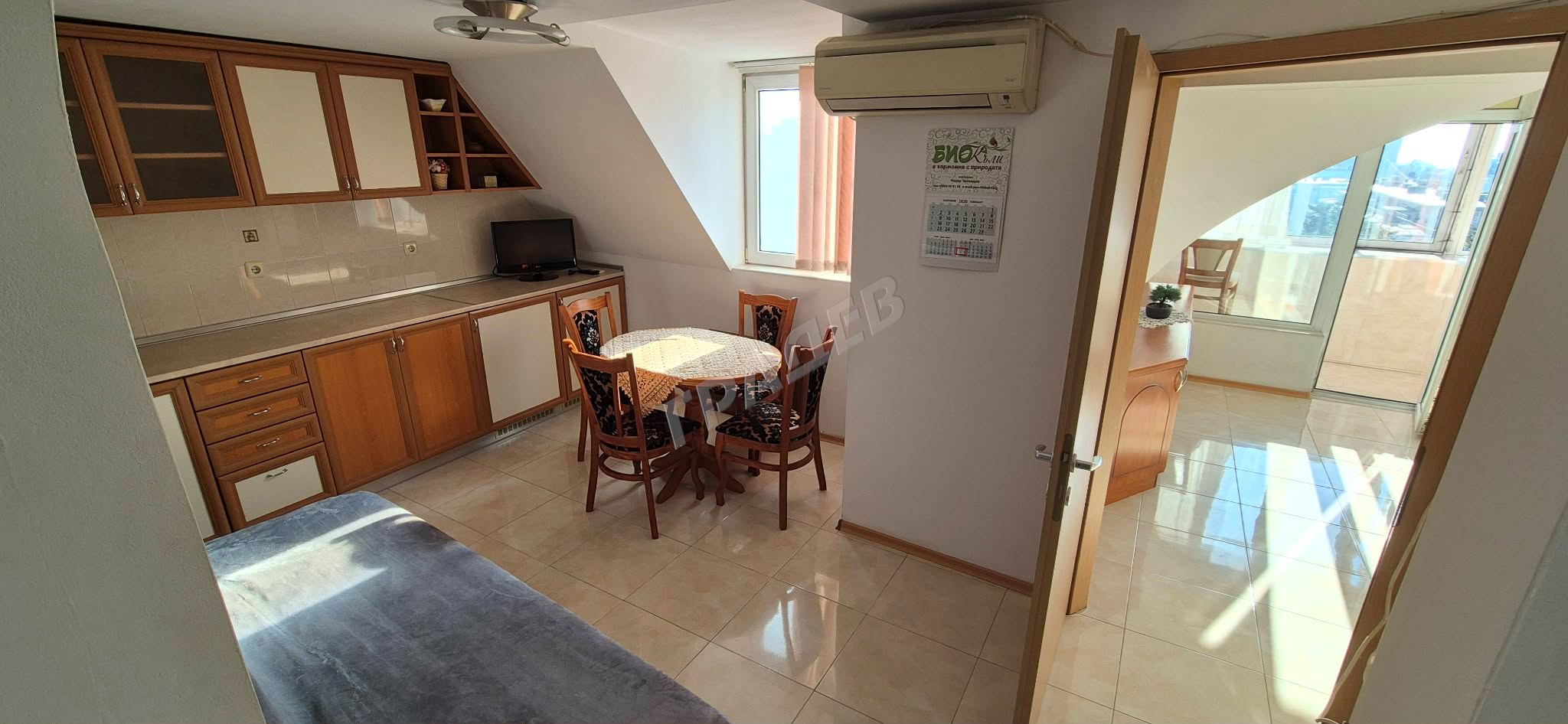 – Разпределение: 3 отделни помещения – дневна, самостоятелна кухня с трапезария и спалня; баня с тоалетна; балкон ☀️
