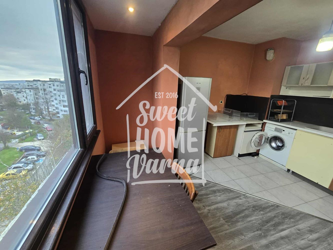 Екипът – Sweet Home Varna Ви предлагаме апартамент с четири отделни помещения в кв.Владиславово. Изложение: изток/ запад. Позициониран на седми жилищен етаж от осем етажна сграда снабдена с асансьор и добре поддържани общи части. На ЧЖП: 81,25 кв.м.са разположени, както следва: коридор, килер/ нисша, баня, тоалетна, кухня с усвоена тераса към нея, спалня, втора спалня с размерите на хола, хол, открита тераса с излаз на нея от двете помещения и прилежаща маз- 2,61 кв.м. Апартамента е за освежаване, но може да се влезе и да се живее. Настилките са: ламиниран паркет, естествен паркет, теракот. Но този тип жилища предразполага и преустройване в: дневен тракт с три спални ако сте по- голямо семейство. За по- добра представа за разположението на помещенията Ви предоставяме схема. В близост: детска градина, ясла,магазини, поликлиника, супермаркети ,спирки на градски транспорт осигуряващ връска до всяка точка на града. За допълнителна информация и огледи цитирайте код: 4448 на тел.: 0895803009 Мария Лечева.