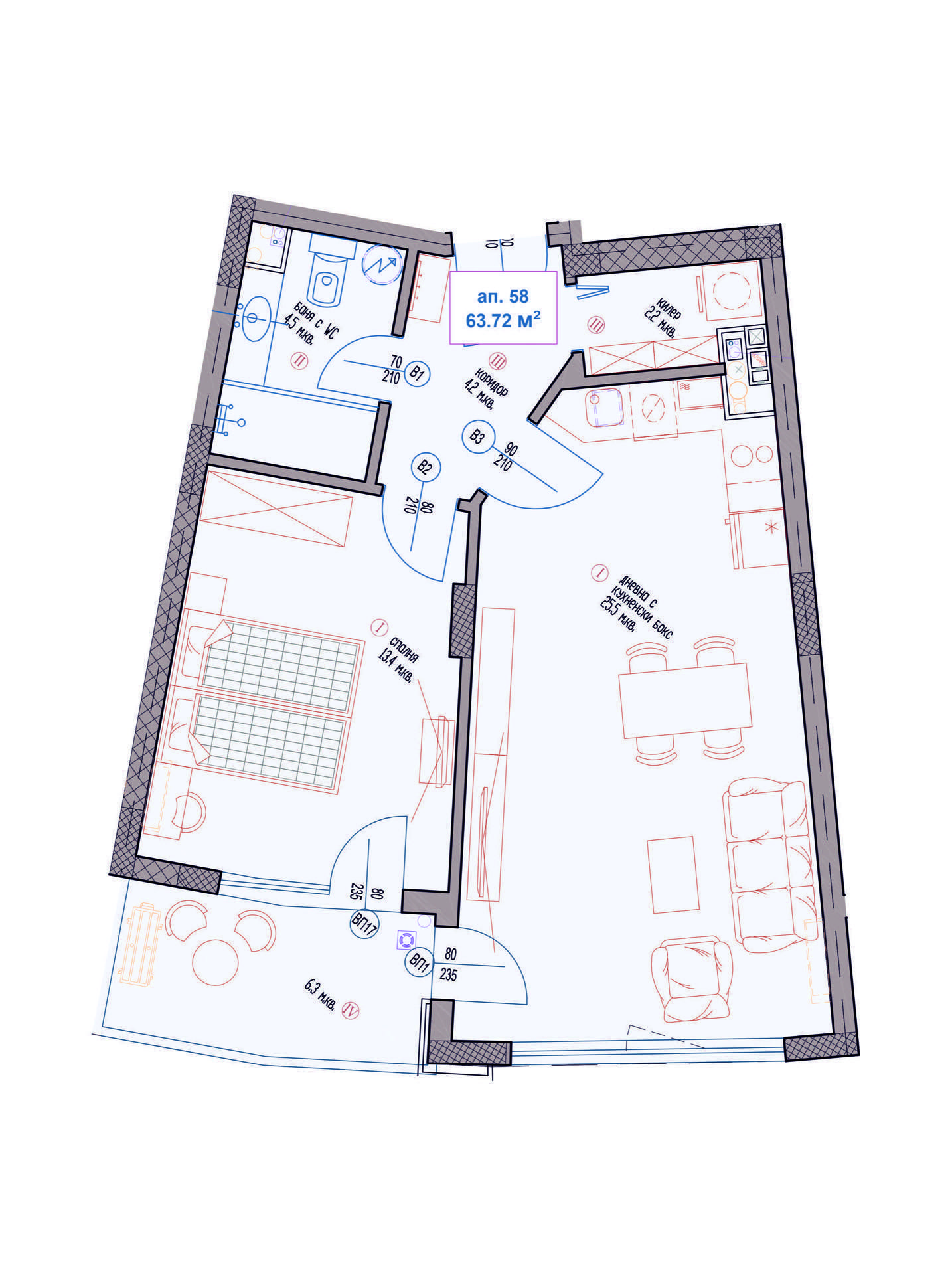 >>> Направете запитване за Двустаен Апартамент А58