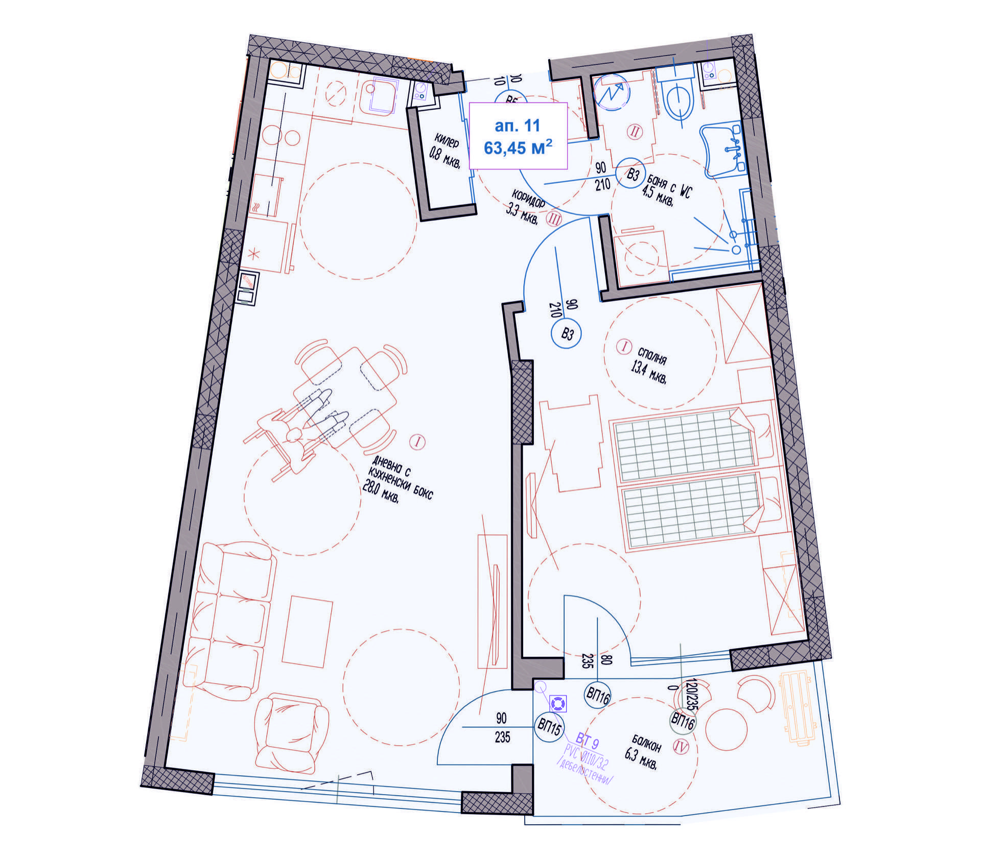Двустаен Апартамент Б11 ( ново строителство ) с код №: 1074508 на с площ 72,00 м2 намиращ се на етаж 5 от 17 етажа в Briz Homes - район Бриз, гр. Варна, като типа на сторителството е тухла. Дата на завършване ( Акт 16 ) , състояние на издаване на апартамента - БДС.