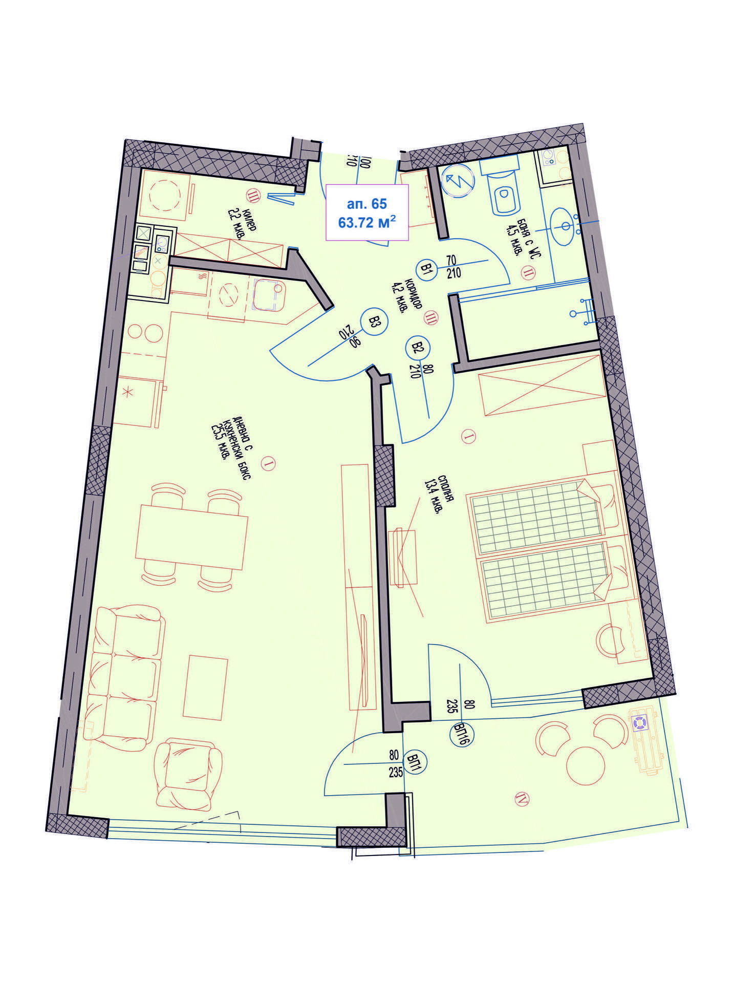 >>> Направете запитване за Двустаен Апартамент Б60