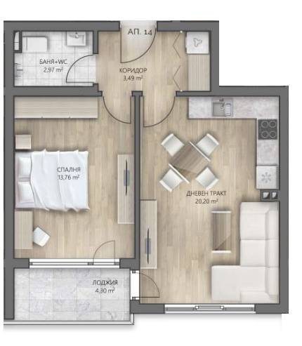 Двустаен Апартамент 14 ( ново строителство ) с код №: 1075310 на с площ 61,00 м2 намиращ се на етаж 5 от 6 етажа в Жилищна сграда Adeko - район Погребите, гр. Варна, като типа на сторителството е тухла. Дата на завършване ( Акт 16 ) , състояние на издаване на апартамента - БДС.