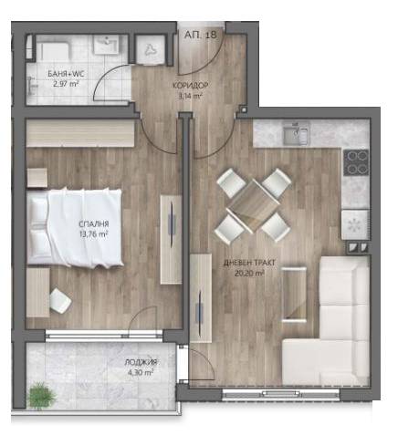 >>> Направете запитване за Двустаен Апартамент 18