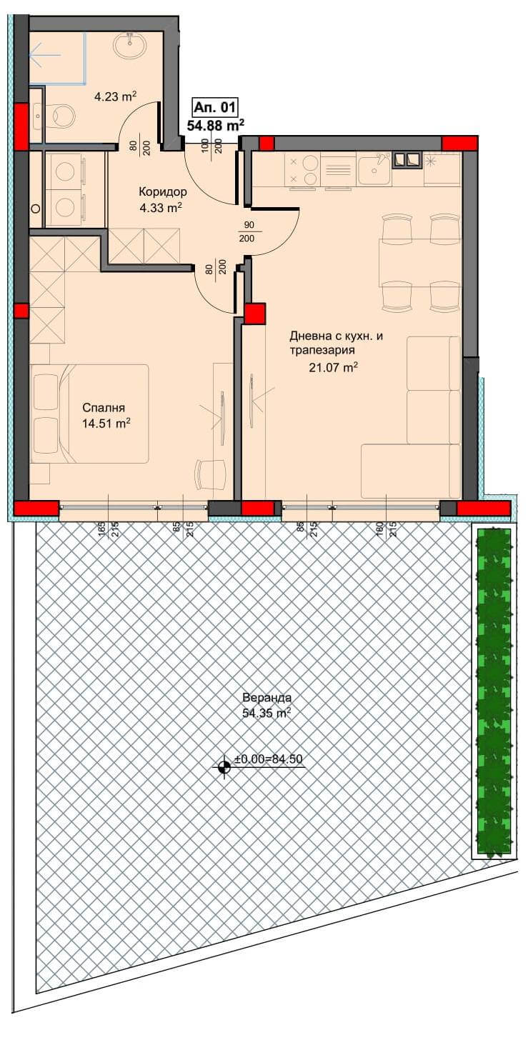 >>> Направете запитване за Двустаен Апартамент А1