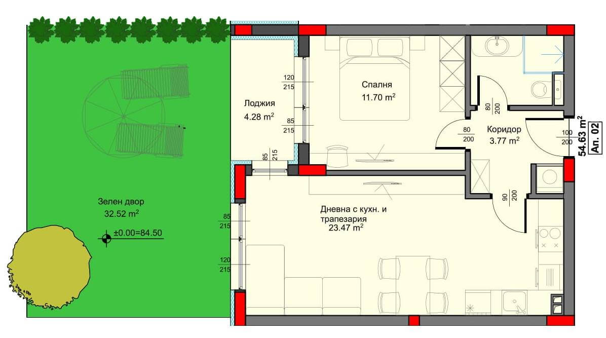 Двустаен Апартамент А2 ( ново строителство ) с код №: 1075453 на с площ 93,00 м2 намиращ се на етаж 1 от 6 етажа в Жилищна сграда Panorama Asparuhovo - район Аспарухово, гр. Варна, като типа на сторителството е тухла. Дата на завършване ( Акт 16 ) , състояние на издаване на апартамента - БДС.