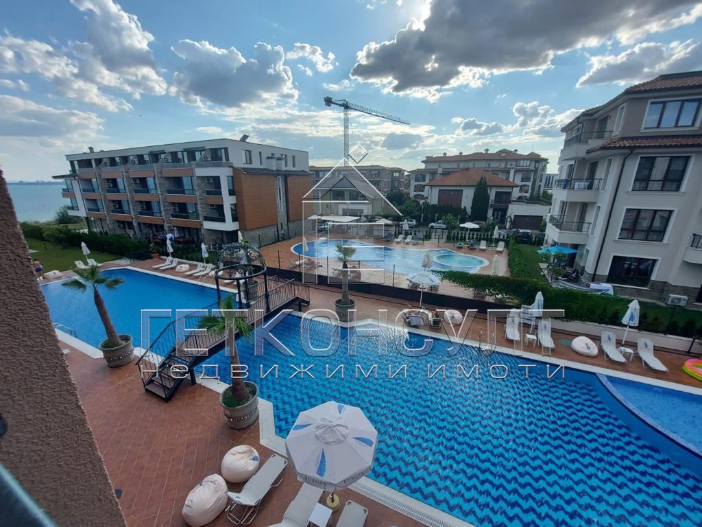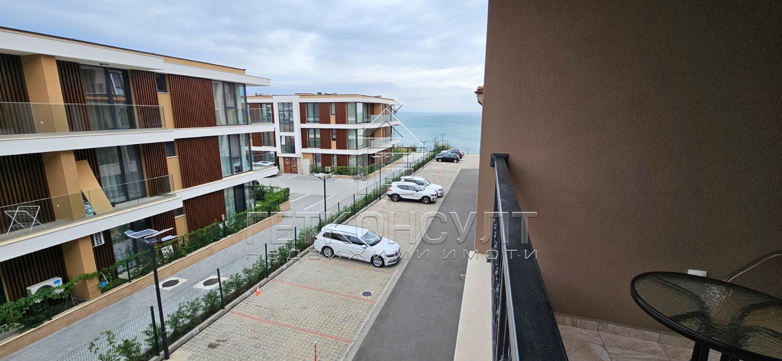 Предлагаме за продажба напълно обзаведен и готов за ползване двустаен апартамент, разположен в модерен затворен комплекс, първа линия море, граничещ с морския пясък. Имотът се намира в сграда с асансьор, свъведена в експлоатация, което го прави подходящ както за лично ползване, така и за инвестиция с висок потенциал за отдаване под наем. Функционално разпределение: дневна с кухненски бокс, спалня, баня с тоалетна, тераса, входно антре. Напълно обзаведен и оборудван – готов за директно нанасяне. Разположен на удобен етаж, достъпен с асансьор. Локацията съчетава спокойствие, непосредствена близост до плажната ивица и удобствата на затворен тип комплекс (охрана, рецепция, видеонаблюдение, открит басейн, и др.). Такса поддръжка 14 EUR /кв м годишно. Сградата е въведена в експлоатация 2021 г, с асансьор, В близост ресторант, СПА, супермаркети, СПИДИ, автобусна спирка на номер 15, летище на пешеходно разстояние (без шум от самолети).