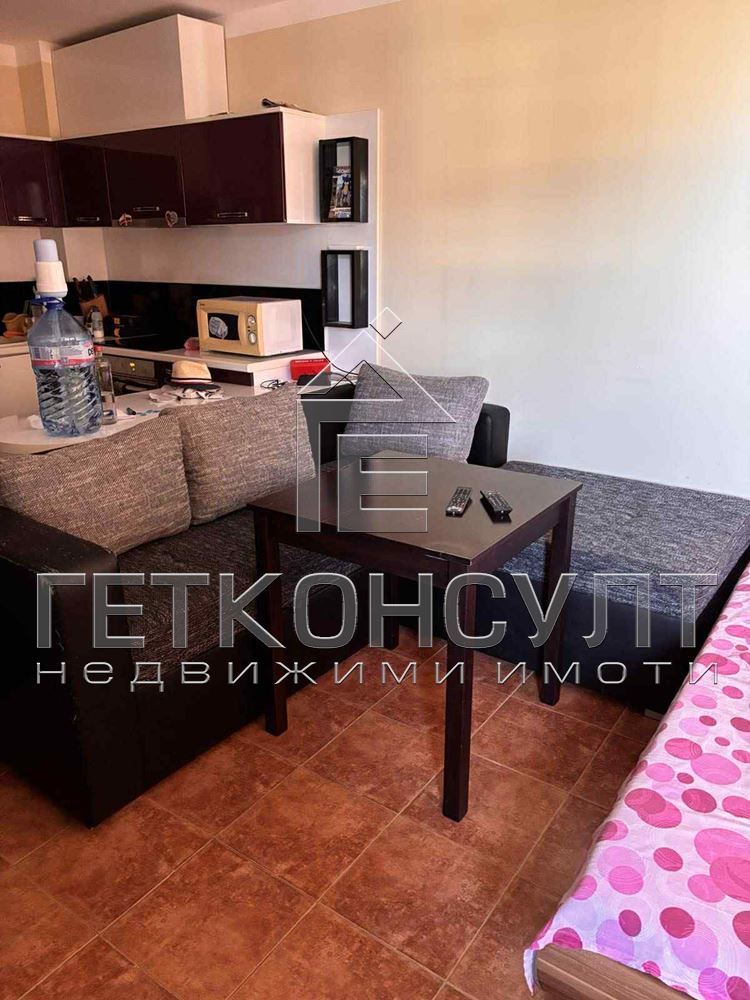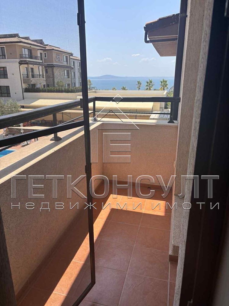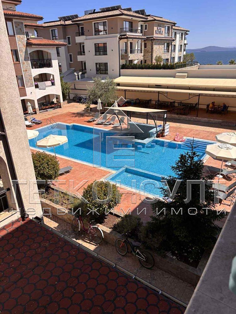 ГЕТ Консулт @ ЕКИПЪТ предлага ексклузивно за продажба двустаен апартамент на метри от морския пясък. Обща квадратура от 54.54 кв м предлага: дневна, спалня, килер-перално, санитарен възел, тераса. Имотът се продава в напълно обзаведен вид, на трети етаж, с гледка море от терасата. Затворен тип комплекс: открит басейн, барбекю зона, контролиран достъп, охрана, фитнес (срещу заплащане). В близост супермаркет, ресторант, СПА, автомат на СПИДИ, автобусна спирка на 300 м. Пешеходно разстояние от летище Бургас (2 км, без шум от самолети).Такса поддъжка 98 лв/месец.