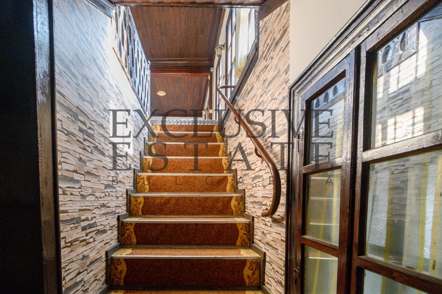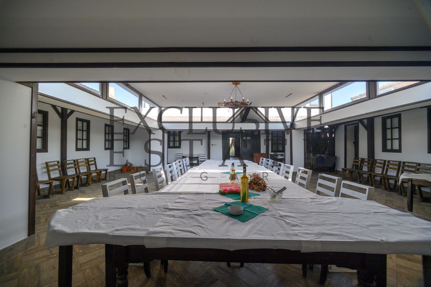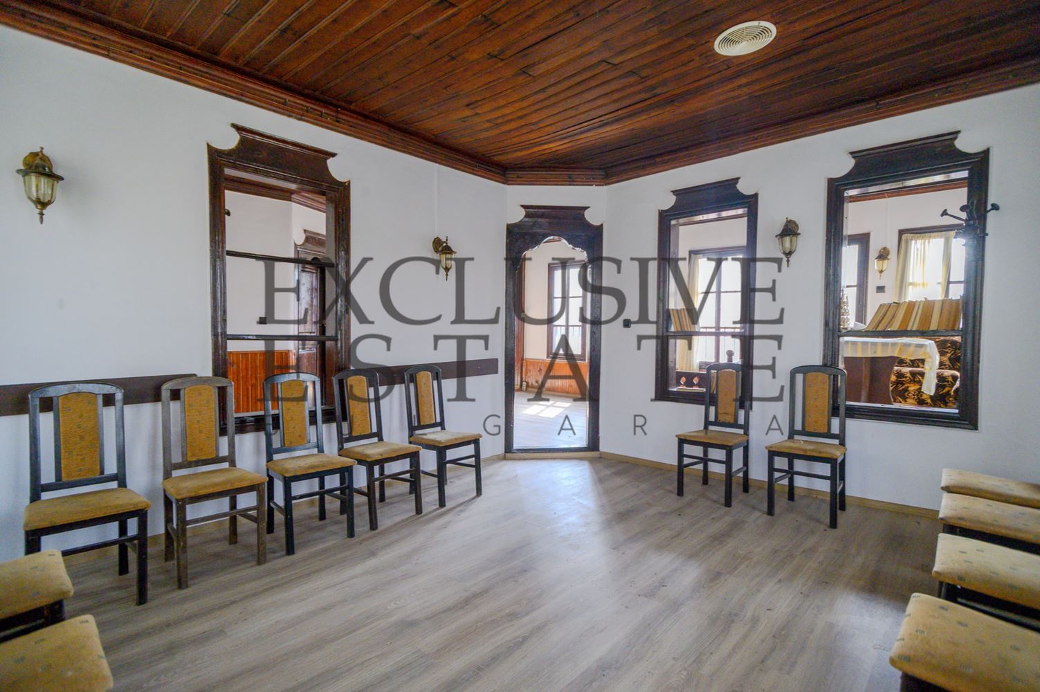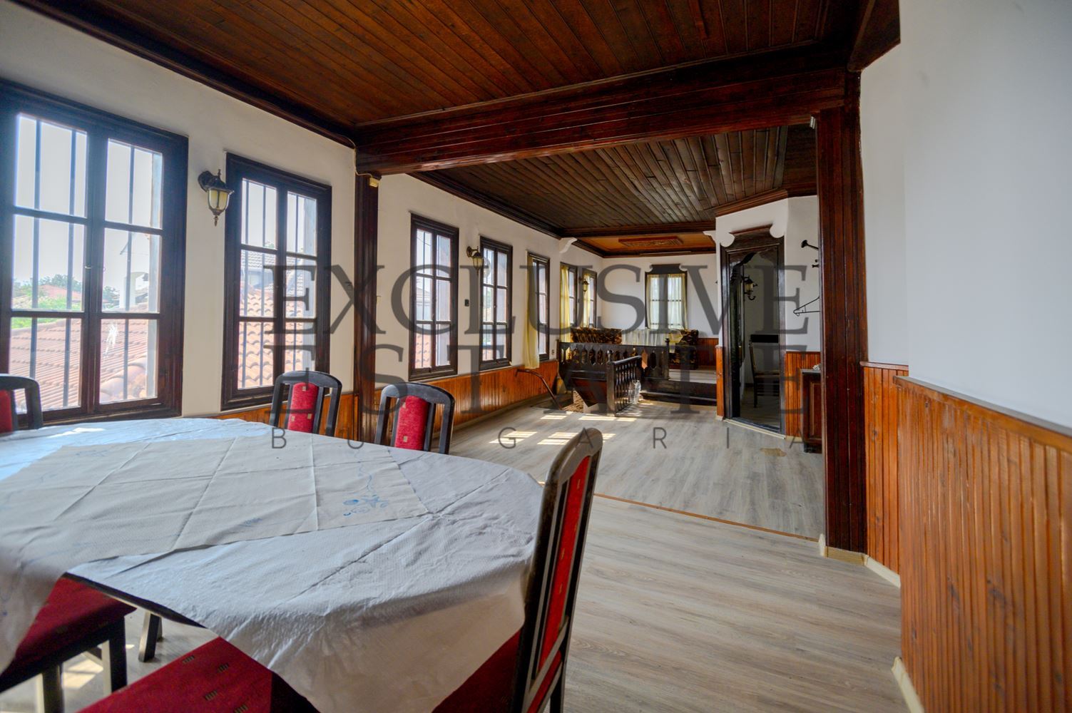Ексклузивно!!! Екипът “Ексклузивни имоти България“ представя на Вашето внимание реновирана двуетажна къща във Възрожденски стил и зимна градина, експлоатирана и ползвана като ресторант, находяща се в кв. Вароша разположена в централната западна част на града. Върху площ от 344кв.м е разположена къщата, която е с каменни основи, РЗП 154 кв.м и зимна градина 122кв.м. и добре поддържан двор с площ 140 кв.м. Напълно ремонтирана през 2021 година. Къщата е тухлена, гредоред, покрива е в отлично състояние. Разпределението е както следва: