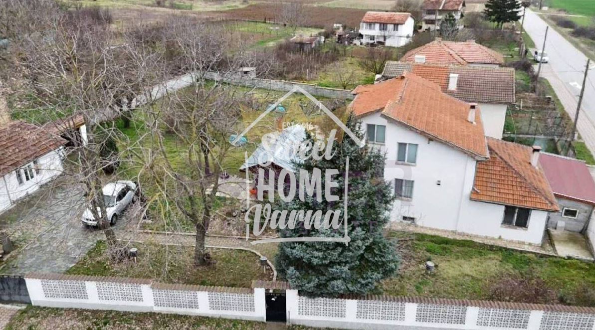 Sweet Home Varna. Предлагаме Ви за продажба голяма семейна двуетажна ъглова къща с РЗП:180 кв.м. в с.Детелина на 10 мин.от Шкорпиловци. Големият двор – 1270 кв.м. предлага не само красиви гледки, но много възможности за развлечение – беседка, подготвено място за басейн, детски кът, допълнителна постройка в която са поместени : помещение за търговски цели -25 кв.м., оборудвана фитнес зала, сауна, гараж и още две парко места .Поддържан, озеленен, масивна каменна ограда.Тези удобства не само добавят на къщата впечатляващо усещане за комфорт и разкош, но и осигуряват възможности за здравословен начин на живот и спокойствие в собствения ви дом на село. Имотът е с изрядни документи. Къщата е с просторни стаи и високи тавани. Построена и обзаведена прилично. Състои се от два етажа по 90 кв.м. и маза. На първият етаж са разположени: входно антре,две спални, просторна кухня, голям хол , килер и баня и тоалетна в едно помещение. Към вторият етаж се достига по външно стълбище и се състои от: две големи преходни спални, широк коридор, кухня и баня и тоалетна в едно помещение. Имотът предлага изключително уединение и комфорт, допълнен с всички удобства, необходими за модерния начин на живот в прегръдката на природата. За допълнителна информация и огледи цитирайте код:3804 на тел.: 0895803009 , 0885280009 Мария Лечева.