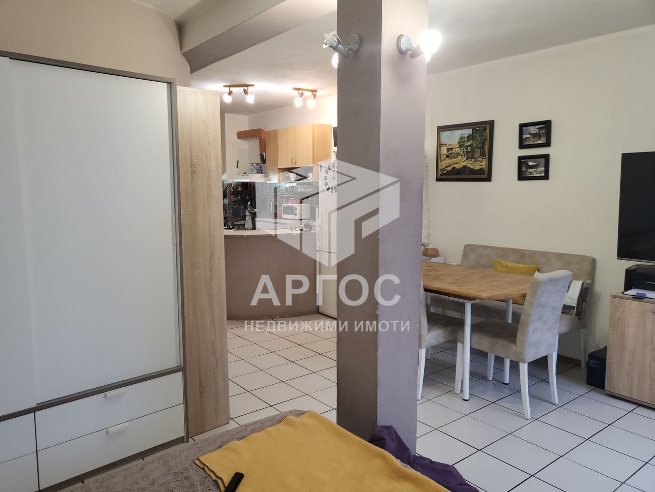Студио: Едно цяло помещение с кухненска зона, дневна зона и баня с тоалет.