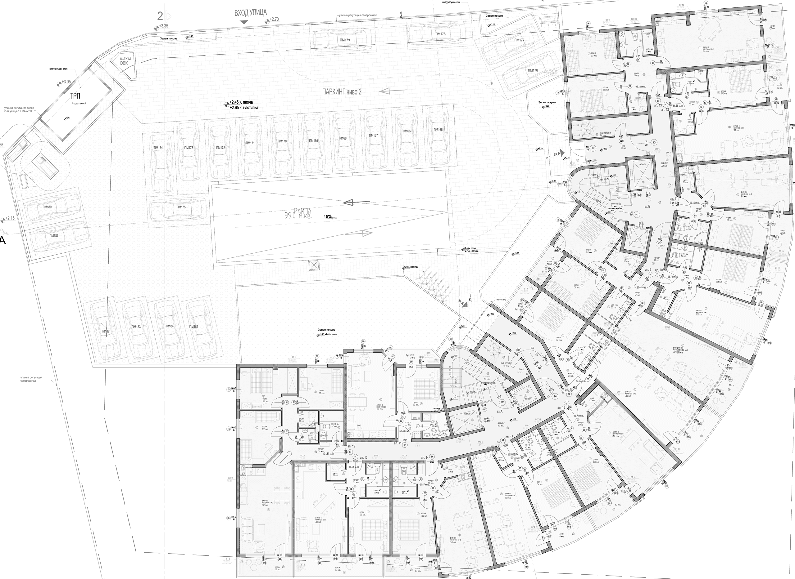 Открито Паркомясто 179 ( ново строителство ) с код №: 1074748 на с площ 12,00 м2 намиращ се на етаж 5 от 17 етажа в Briz Homes - район Бриз, гр. Варна, като типа на сторителството е тухла. Дата на завършване ( Акт 16 ) , състояние на издаване на апартамента - БДС.