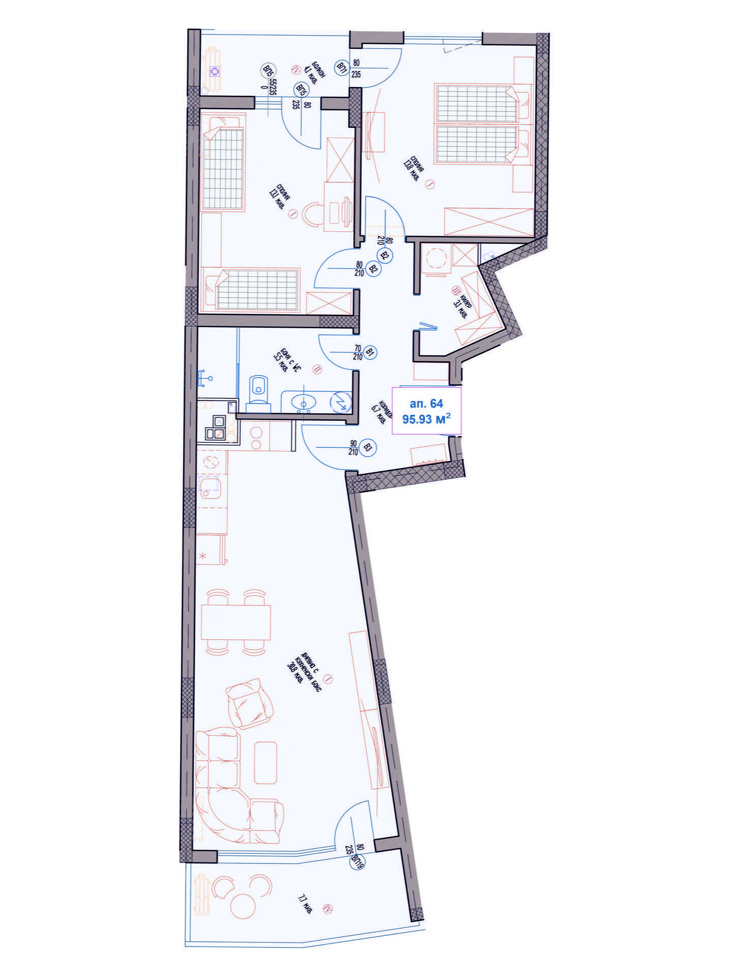 Тристаен Апартамент Б64 ( ново строителство ) с код №: 1074561 на с площ 109,00 м2 намиращ се на етаж 16 от 17 етажа в Briz Homes - район Бриз, гр. Варна, като типа на сторителството е тухла. Дата на завършване ( Акт 16 ) , състояние на издаване на апартамента - БДС.