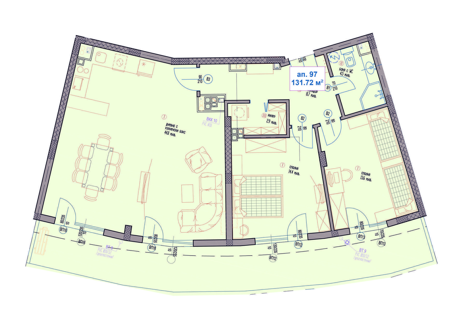 >>> Направете запитване за Тристаен Апартамент А97