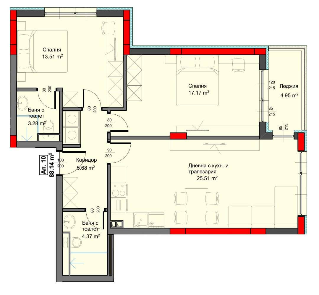 Тристаен Апартамент А10 ( ново строителство ) с код №: 1075461 на с площ 99,00 м2 намиращ се на етаж 2 от 6 етажа в Жилищна сграда Panorama Asparuhovo - район Аспарухово, гр. Варна, като типа на сторителството е тухла. Дата на завършване ( Акт 16 ) , състояние на издаване на апартамента - БДС.