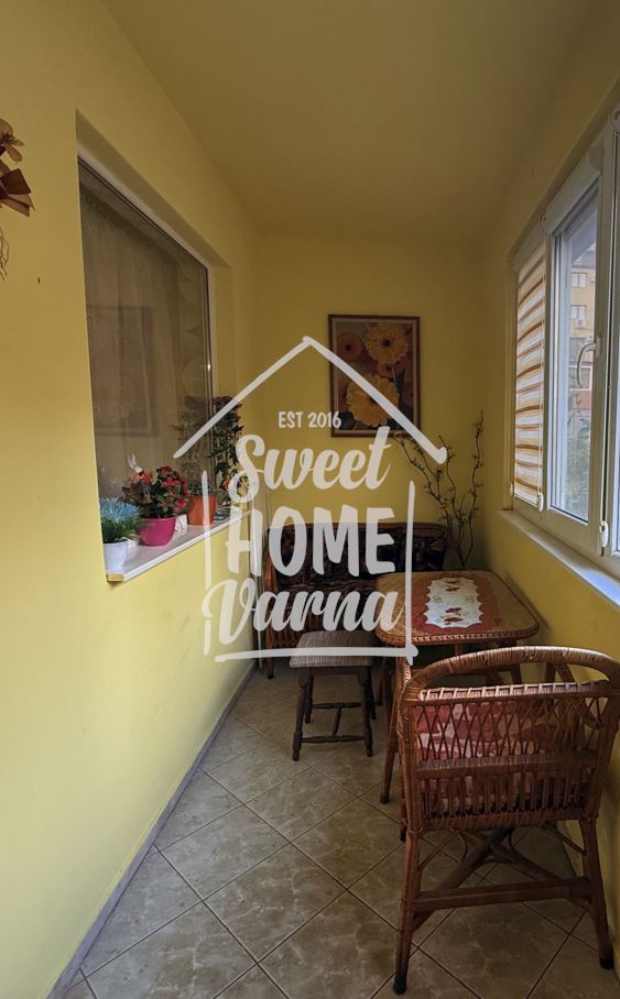 Екипът – Sweet Home Varna Ви предлагаме Ексклузивно тристаен апартамент -Завод Дружба. Позициониран на първи висок етаж от девет етажна сграда снабдена с асансьор и поддържани общи части. Среден вход, без крайни стени. Жилището е светло и топло. На 72,30 кв.м. са разположени както следва: коридор, баня, тоалетна, Г- образна кухне с излаз на голяма, остъклена с ПВЦ тераса , спалня, килер, просторен хол с излаз на остъклена с ПВЦ тераса и маза- 3,36 кв.м. Настилките са: теракот ( кухня, тераси, коридор), ламиниран паркет ( спалня и хол) , банята и тоалетната са отремонтирани. Предлага се във вида от снимките напълно обзаведено и оборудвано готово за нанасяне! За по- добра представа за разположението на помещенията Ви предоставяме схема. Жилището е на много комуникативно място. В близост: магазини ,аптеки, училище, детска градина, Майчин дом, бензиностанция – OMV, Община Приморски , пазар Чаталджа, базар Левски, спирки на градски транспорт. За допълнителна информация и огледи цитирайте код: 4413 на тел.: 0895803009 и 0885280009 Мария Лечева.