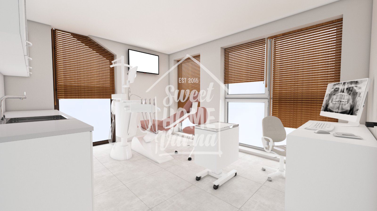 Екипът – Sweet Home Varna Ви предлага т ърговско помещение с голямо лице на главния път Виница – св.св. Константин и Елена – 184 кв.м. . Статут: ЦЕНТЪР ЗА ЗДРАВНИ И СОЦИАЛНИ УСЛУГИ ! Позициониран на втори жилищен етаж от триетажна тухлена сграда със смесено предназначение. Със самостоятелен вход, достъп от външно стълбище и с асансьор лично за етажа. Имотът е в процес на преустройство, в процес на разделяне, готов проект. Състои се от : едно голямо помещение, което ще бъде разделено на четири кабинета и една чакалня, тоалетна за пациенти -5,27 кв.м., коридор- 22,78 кв.м., стерилизационна – 5,27 кв.м., помещение за отпадъци – 2,58 кв.м. и голяма тераса . Всички помещения са с големи френски прозорци, много добра осветяемост. На известните визуализации можете да придобиете представа. Много слънчево и светло с морска панорама. За допълнителна информация и оглед цитирайте код: 4033 на тел.: 0895803009 Мария Лечева.