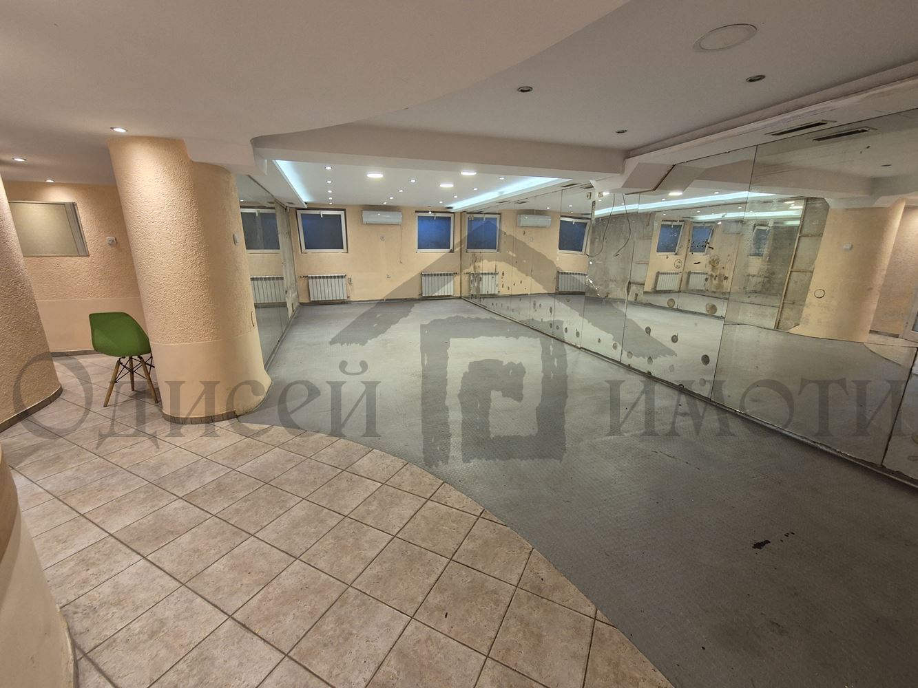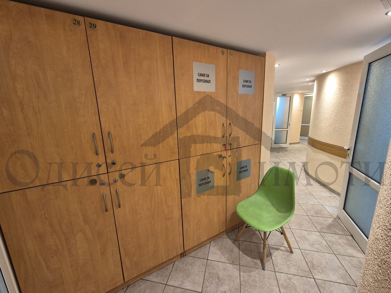Одисей Имоти предлага помещение със статут ФИТНЕС ЦЕНТЪР С КАФЕ СЛАДКАРНИЦА на партерен и сутеренен етажи със застроена площ от 236 (двеста тридесет и шест) кв.м, от който на партерен етаж 111 (сто и единадесет) кв.м, състоящ се от: кафе-сладкарница, приемна с работен кът, бар-плот, зимна градина-чакалня, фризьорски салон, козметичен салон, коридор, тоалетна, площ на сутеренен етаж 125,00 (сто двадесет и пет) кв.м, състоящ се от стълбище, фоайе, офис помещение, коридор, душ кабини, съблекалня, битова стая, солариум, фитнес зала, тангентор, сауна, помещение за релаксация, две тоалетни, баня, находящ се в гр. Варна, ул. Баба Тонка 7, поставени подови настилки,изградено вградено осветление,вентилация на двете нива, поставни нови климатици.